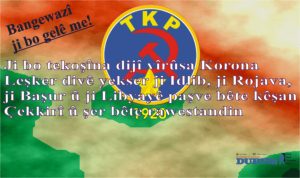 Çavê gelê me li axa kesê nîne. Divê em dijî polîtîkayên Erdogan yên dagîrkerî û ilhaqkirinê derkevîn. Em dengê xwe bilind bikîn. Ev denge dê me ji mirina koronayê rizgar bike, hem jî dê dawiya rejîma Erdogan ya faşîzane bîne!