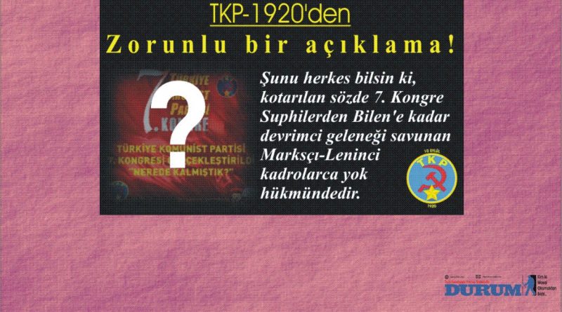 Read More“Politika Gazetesi” facebook sayfasındaki bir duyuruya göre, bazı eski TKP’lilerden oluşan bir grup, TKP’nin 7. Kongresi’ni topladıklarını ilan etmişlerdir. Duyuruda,